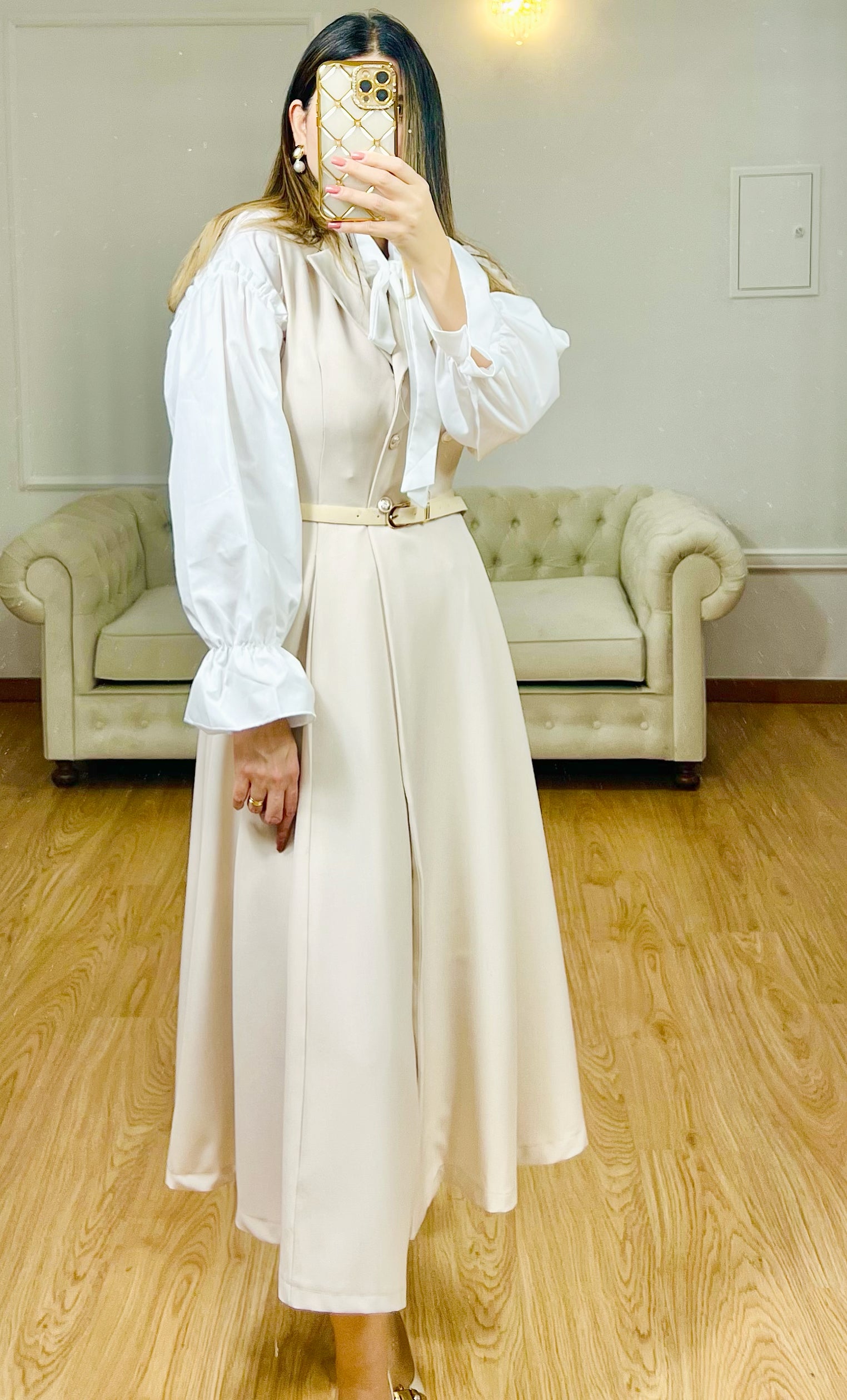 Vestido Senhora Midi com Botões Ellie Nude - Acompanha o Cinto