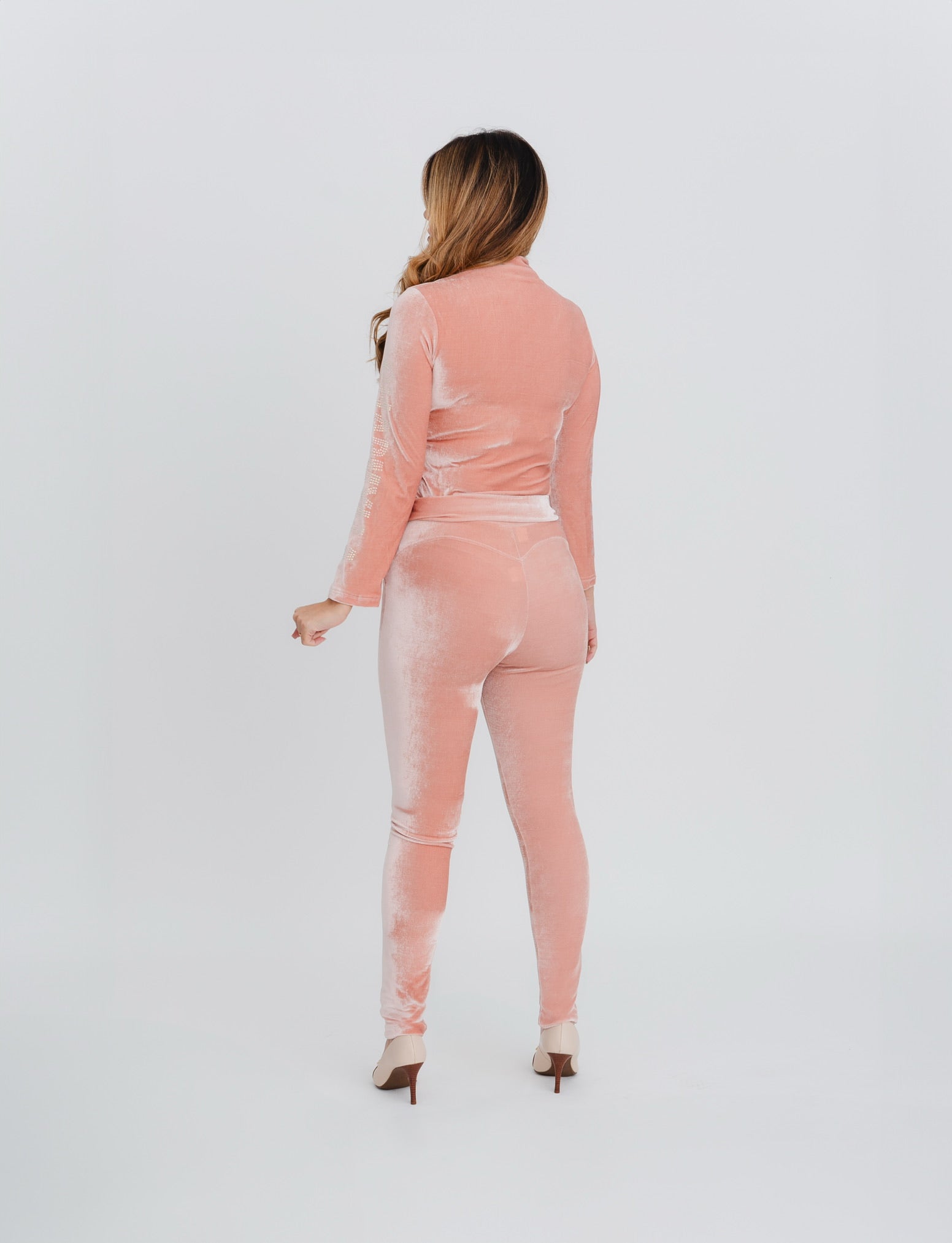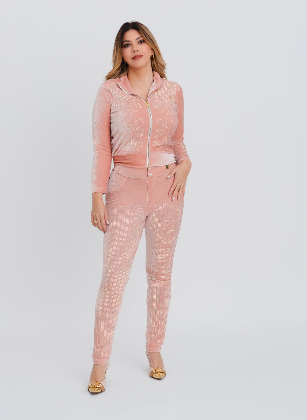 Conjunto Feminino em Veludo Rosé com Aplicações – Elegância, conforto e brilho na medida certa